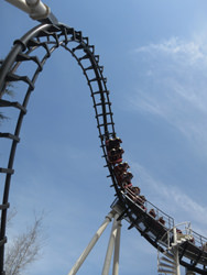 The park opened its first roller coaster in 1923, the The Wild Cat, an early Philadelphia Toboggan Company coaster. In 1970, Hershey Park began a redevelopment plan which made the park into the new Hersheypark. The 1970s brought the first looping roller coaster on the East Coast, as well as a 330 foot tall observation tower, the Kissing Tower. Beginning in the mid-1980s, the park rapidly expanded. Between 1991 and 2008, the park added eight roller coasters and a water park. As of 2011, the park's area covers over 110 acres (45 ha), containing over 60 rides and attractions. Adjacent is Hershey's Chocolate World, a visitors center that is open to the public and that contains shops, restaurants, and a chocolate factory-themed ride.