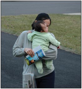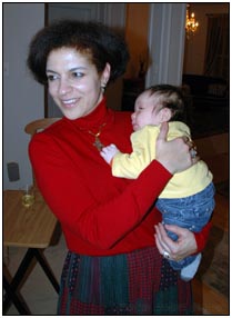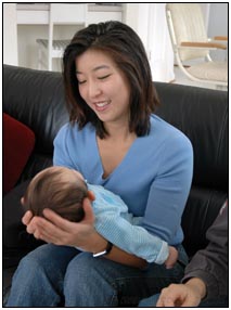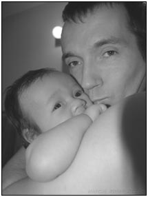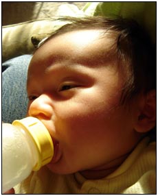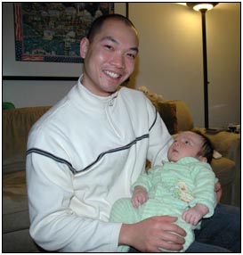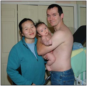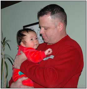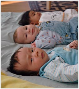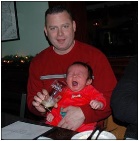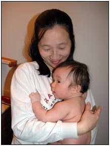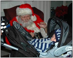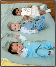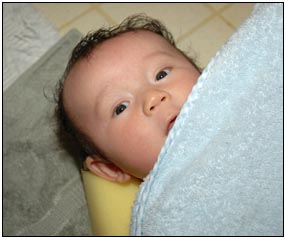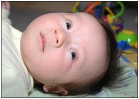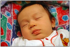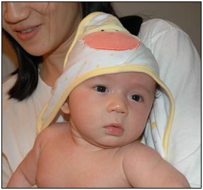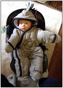 This month I developed a few VERY important abilities with my hands. First I gained the coordination to be able to swat much more accurately, which makes play time great fun. Secondly I found that, like a magnet, I can now get my hand into my mouth, which is great for when I'm feeling a little stressed about life and just want to calm down a bit. I've also been finding that I can sleep for longer periods, and I think this is much easier on Mommy since she has gone back to work. We managed to eat out quite a few times recently, at first I thought that I'd be too active for this but turns out that the crowds just put me to sleep (like the car). There were some issues getting me into Daycare starting Jan 3