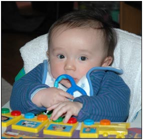 and I'm five months old today. My motor skills are coming on a treat, this has been essential to my mission to discover my world by taste; I can't wait to crawl so that I can get my mouth around all of the other things in my house. Note to parents