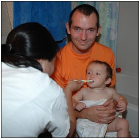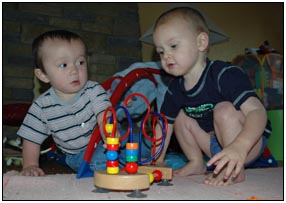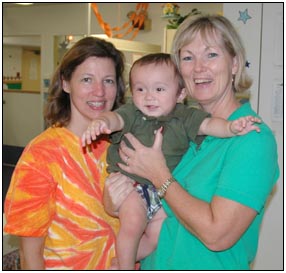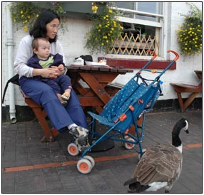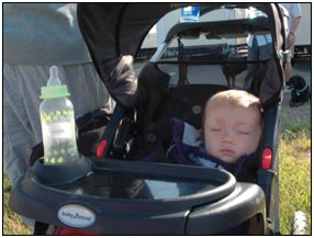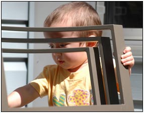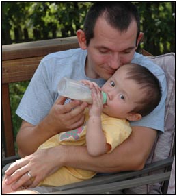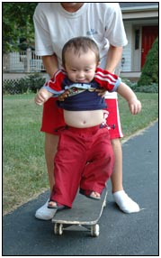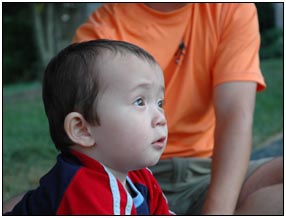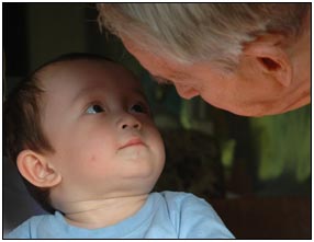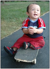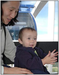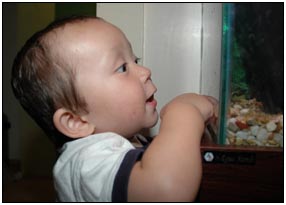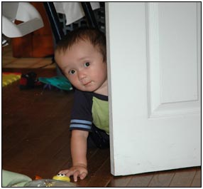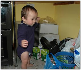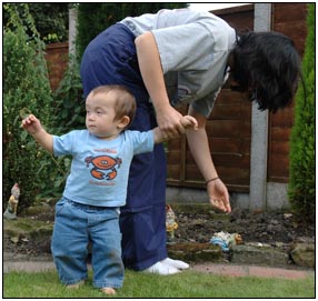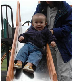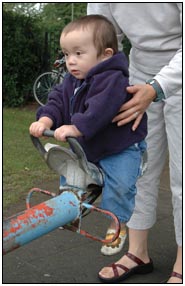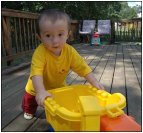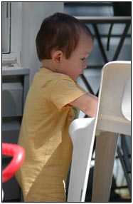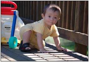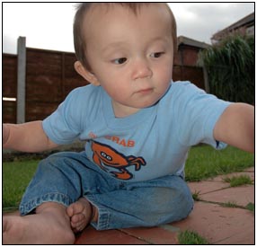 What a big month this has been for me, my walking skills that had just started last month developed into a real traveling ability. The weather has again been great recently which has meant more time playing out on the deck, which is really cool, and let me practice my running. Near the middle of this month I took my parents to England so that I could meet some of these people who they talk about. We had a really nice time while over there and I got to meet a lot of really nice relatives. My Great Grandfather kept making me laugh by trying to scare me, so I just giggled at him.