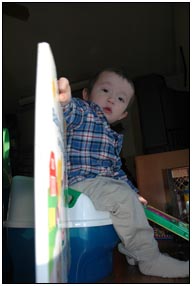 Mom is blooming just like the flowers in the garden, and I'm very excited to meet my new sibling. Mom and Dad don't think that I understand whats going on, huh... grownups, think they know it all, I'm only little but I'm not blind, and ask yourself this, when was the last time YOU saw the inside of a uterus? We've been spring-cleaning the house in preparation for Mrs Wu's visit next month. I'd like to be able to say that I've been helping, but I still haven't learned how to lie, or how to help clean. The magic word of the month is NO, a very powerful word when used in response to questions such as: Do you want your shoes on? or Do you want to go to bed now? A quick word to all the babies out there, when you use the 'no' word it also helps to throw a tantrum.