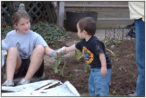 Using my new garden tools to help mom,