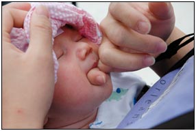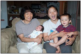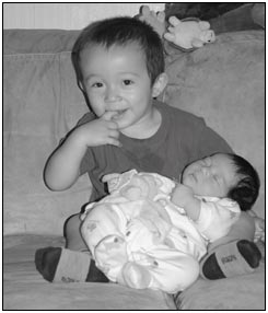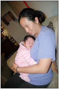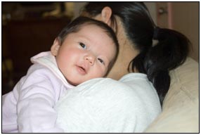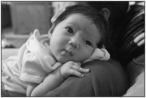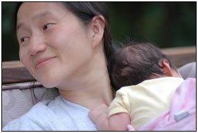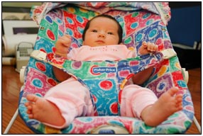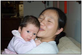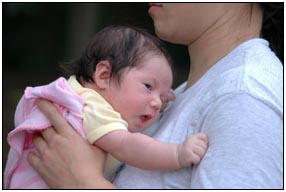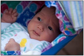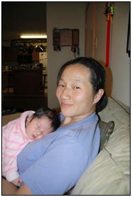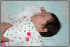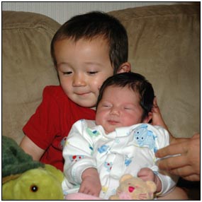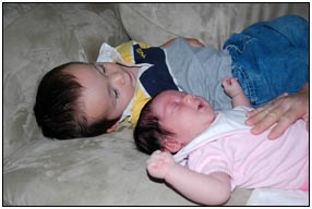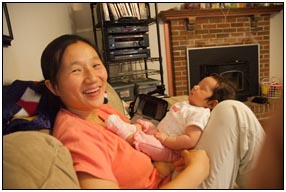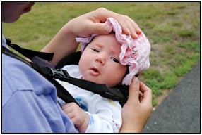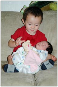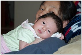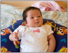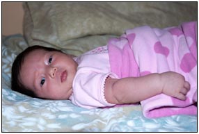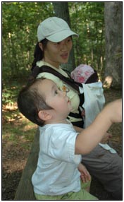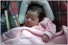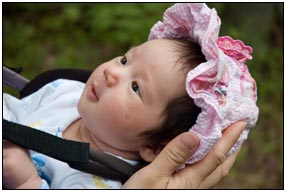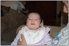 Sophie has been developing her personality and is very responsive to what we say and do, she often laughs at us when we make funny sounds or tickle her feet. She regurgitates milk more than Marcus ever did (we think that Marcus just hates to waste food) and can save up a bowel movement to the point of explosion, neither of which are admirable skills. She has been a non-consenting participant in a few walks in the woods and a visit to the zoo, what she thought of these activities we will surely never know. Late in the month she got a little too hairy so we decided to give her that very first hair cut, she didn't like this very much and so the cut was far from easy or perfect, you know how girls are about their hair.