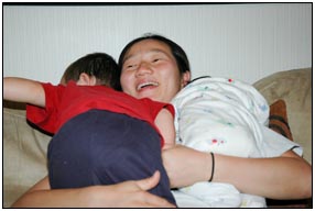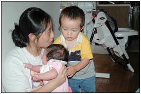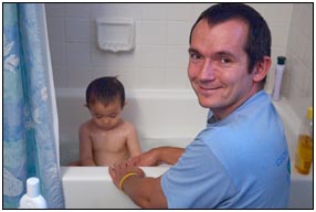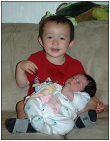 This month Marcus got his first bed (a mattress on the floor), and has managed to keep us up every night since. The mobility of not being in his crib is a curse to anyone in the house who wants to sleep through the night. After our upcoming trip we will really make a concerted effort to pull him into line (we promise). June has been a month for getting closer to Sophie, and learning to help out in more ways that before. Even though sometimes he can try too hard to ease Sophie's discomfort, he loves her very much and is very attuned to her needs. Language has been improving more this month, no real sentences yet but a lot of new words and a lot of copying. Marcus enjoyed going on a few long walks with us this month and likes to shout at the animals at the zoo. While Damian was in LA on a business trip Marcus managed to develop a mysterious illness which gave him sky rocketing high temperatures (up to 104.8f). This made Nien work very hard, especially when getting Marcus to sleep. The illness seemed to disappear when Damian returned home, maybe he was just love sick. We took Marcus swimming for the first time in ages this month and after the initial trepidation he thoroughly enjoyed it.