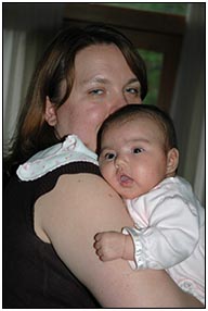 The big 'One' came and went without too much fuss, and only a little celebration. Sophie has been practicing her walking and falling this month, and is getting pretty good, pretty fast (at both). She is becoming more and more sociable with people, although she can still be fairly clingy to Mom and Dad.