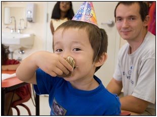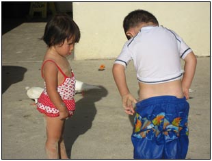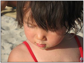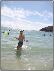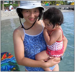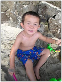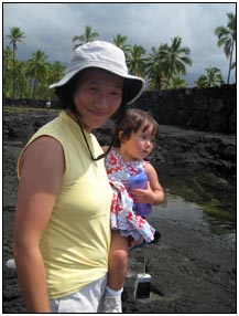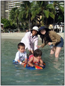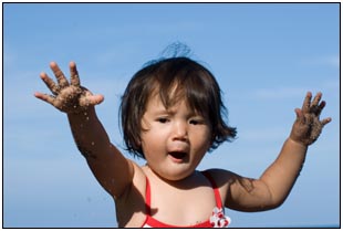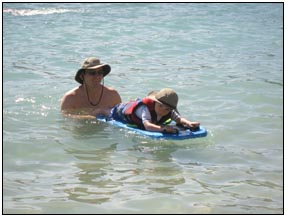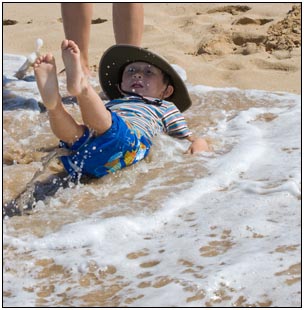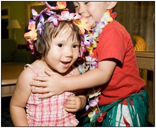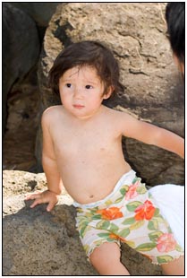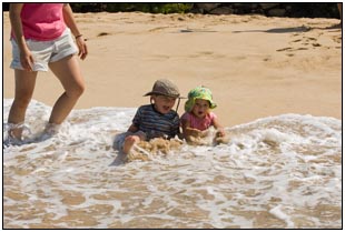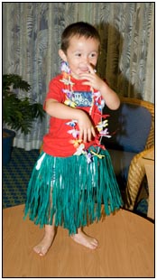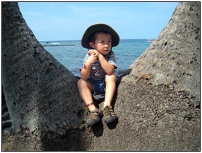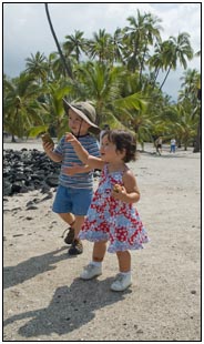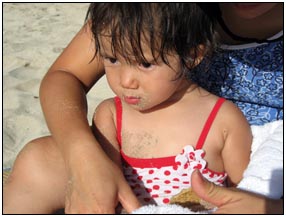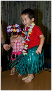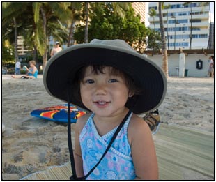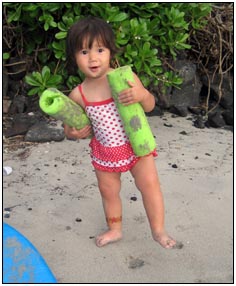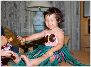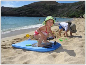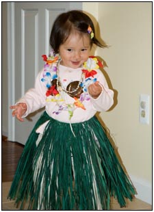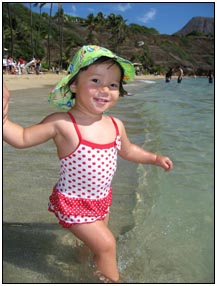 Little Miss Independent - "No", "self" (I'll do it myself), "go that way", "Daddy no, Mommy no" - are the kinds of words that we have been hearing a lot from Sophie this month. She insists on eating her own food and brushing her own teeth which can be really funny to watch. On vacation she was happiest on the beach covered in sand and shouting at the waves. She seemed to think little of the Hawaiian scenery, but was very happy sampling food and dancing in her hula outfit (as was her brother for that matter).