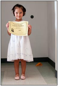 Sophie doesn't much like to work hard, so when Granddad Dave and Granny Kate were doing work she would most likely lose herself in the garden or on her scooter. When it came to the “Race for the Cure” however she was fully energized and managed to walk a large portion of the course, which is really good going for her short little legs. Like Marcus, Sophie also got an award this month for her great work and test results in Chinese class, the award ceremony and the medal made Sophie smile for quite some time. Sophie also took a Tae Kwon Do test this month to get her yellow belt, and despite her playing and her wondering head she managed to scrape through and pass the test. On the 20