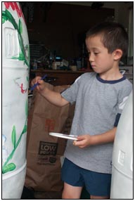 Marcus graduated from the Montessori children's Center in a wonderfully entertaining graduation celebration where he played his part perfectly, the event was super fun for all of us. The day after the Graduation Marcus tested for his Tae Kwon Do Orange belt and managed to perform really well (and very seriously) throughout the test. Late in the month Marcus got a visit from another of his favorite people, Grandma Wu and he enjoyed showing her our garden.