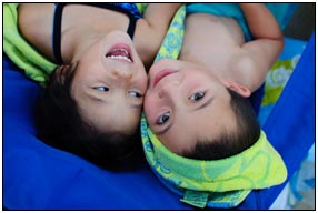 Sophie has gotten to do many of the things that she loves this month. In Yellowstone and the Grand Tetons she got to explore with her big brother and to try lots of new things. Her little legs took her far and she was great on all of the small hikes that we went on. She has been riding her bike a little this month and she can travel a few miles now as long as she gets to wear her nice red shoes. She has spent lots of time in the pool, both playing and for swim team. Her performance in her swim races has been superb, and she really seemed to enjoy being part of the team. Camps this month have been Tae Kwon Do camp for 2 weeks, and YMCA camp for 2 weeks (with Marcus). At the end of the month she got to meet up with her good friend Faith when we went to the farm and they talked and talked like only a couple of five year old girls can. This month we've had Nien's sister staying with us, and Sophie has been a good helper with our guest.