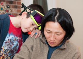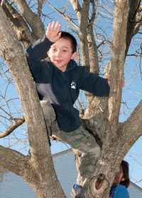 day of school was celebrated at school on the Valentine's Day this year which meant exchanging gifts and lots of sweets, it doesn't get much better than that. Later in the month we all went to visit the school for Math night where Marcus showed us the math games that they get to play at work and how he has been learning math. We sanded and stained a bedroom cupboard for Marcus this month and we got some help with this from Marcus, he was especially happy and excited to help out with something that would end up in his room. Cub Scouts celebrated their anniversary this month with the Blue & Gold banquet where we were entertained by Spencer 'Spinney' Johnson, formerly of the Harlem Globetrotters and fed some tasty (yet unhealthy) food. With the mild weather this month Marcus has had the chance to enjoy some fun outside time. This included riding his bike, climbing trees, and even ice skating. Our fishing expedition yielded no fish yet we managed to have fun on a beautiful day at the lake.