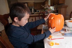 The biggest thing about this October for Marcus was his 8th birthday; he celebrated with his class at school, with his family at a Japanese steak house, and at Rebounderz (essentially a trampoline arena) with some friends. He received way too many presents and had a blast eating nice food and hanging out with his friends to celebrate his special day. He did a great job helping to make a wooden puzzle as part of his party goody bag, and explaining to his friends how to solve it. Marcus had a really fun time selecting his pumpkin this year and did well with the carving later in the month. The Spooky Sprint 2 mile run was a challenge for Marcus, but he managed to run most of the way and ran it in a good time too. Marcus was very brave when we visited the Bradley Farm haunted house for the night show (most scary), and he was a good leader on Halloween night showing other kids the best way to get sweets from our neighborhood :)