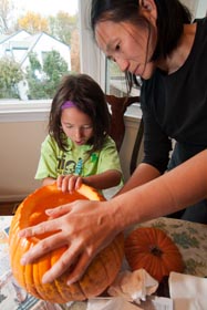 School has been going great although waking Sophie in the cold mornings for school can be a challenge. She has been great at doing her homework and seems to be good at taking part in class. A highlight for Sophie this month has been pumpkin picking with her very good friend Emi, they had a blast searching for the two perfect twin pumpkins. Carving the pumpkin later in the month was also a way for Sophie to show us some of her creative nature.