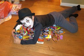 This month Sophie ran with Nien in the Spooky Sprint 2 mile run, she tried really hard and did great to finish the race strong. The run was a great way to get geared up for Halloween. For Halloween Sophie (and all of us) dressed as a mime, and managed to collect WAY too many sweets from the neighborhood, but had a great time.