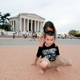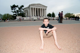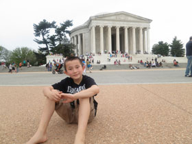 With the weather warming up Marcus has been spending more and more time outside; riding his bike, practicing basketball, and helping repair our broken fence. Sporting activities this month have included soccer, track practice and meets, and rock climbing. Junior LEGO league culminated early this month in a demonstration and judging of the LEGO model house that Marcus' team had created, I think that he enjoyed LEGO league a lot. Marcus had a good time visiting the cherry blossoms in DC and although I don't think that he was too into the trees he had a blast racing around the Jefferson Memorial and shaking blossoms from the trees.