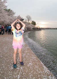 Sophie completed her Junior LEGO league this month and demonstrated (with her team) the cell phone models that they had created for the project to show cell phones from the past, present, and future. Sophie enjoyed visiting the Cherry Blossoms a lot, there was a point where the blossoms were falling so hard of the trees that it was like snow, Sophie seem to enjoy this enormously. Sophie showed the most improvement of any of us while rock climbing this month, at first she was a little timid and would only climb a third of the way up the wall, but by the end of the day she managed to climb all the way to the top. As an early birthday present, Sophie got a bike and we hope that this will give her enough time to get used to riding it before her triathlon in May. Track is going well for Sophie and she is quite the little runner, often in the leading pack of runners in her races.