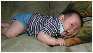 My baby super skills now include sitting, grabbing stuff, leaning over to reach, sleeping on my side, eating like theres no tomorrow, holding my own bottle to feed myself, giggling like a little girl, and getting whatever I want with a smile.