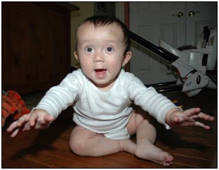 This month I'm a fully fledged crawler, I'm also a bit of a biter, but only with Dads fingers and nose, and off course the new foods that I have been trying recently.